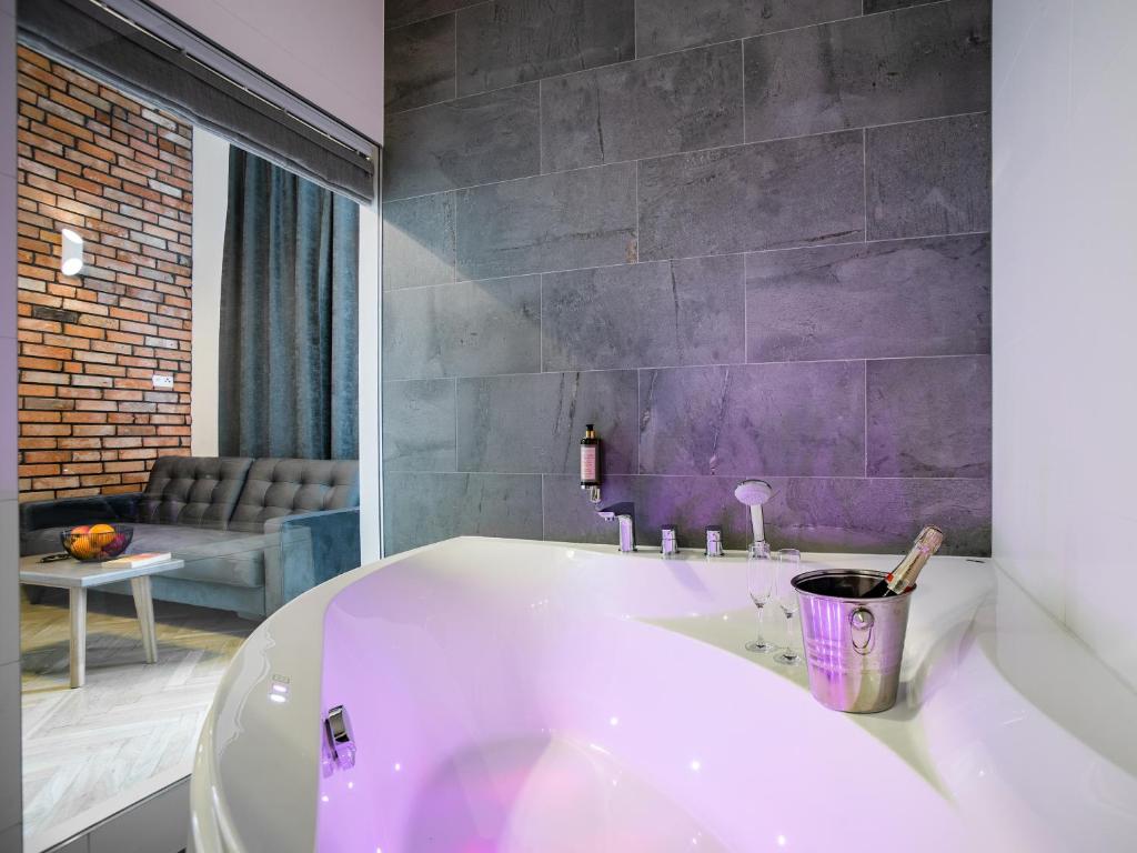 Situated 1.5 km from Wawel Royal Castle and 2 km from National Museum of Krakow, Art Penthouse with Jacuzzi - Krakow Center features free WiFi and units fitted with a kitchen, balcony and seating area. The accommodation features a spa bath. The apartment has private parking, a hot tub and a 24-hour front desk. The apartment complex will provide guests with air-conditioned units offering a desk, a coffee machine, a microwave, a fridge, a safety deposit box, a flat-screen TV, a terrace and a private bathroom with a walk-in shower. Kitchenware and kettle are also available. At the apartment complex, every unit is equipped with bed linen and towels. Buffet and continental breakfast options with warm dishes, fruits and juice are available each morning at the apartment. Guests are welcome to eat in the on-site modern restaurant, which is open for dinner, lunch, brunch and cocktails. A variety of wellness packages are available for guests to get rejuvenated in-house. Sightseeing tours are available around the property. Town Hall Tower is 2.4 km from Art Penthouse with Jacuzzi - Krakow Center, while Main Market Square is 2.4 km from the property. The nearest airport is John Paul II International Kraków–Balice, 15 km from the accommodation, and the property offers a paid airport shuttle service.