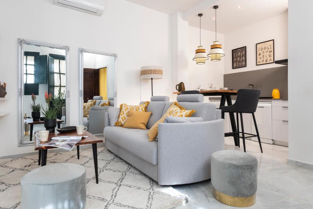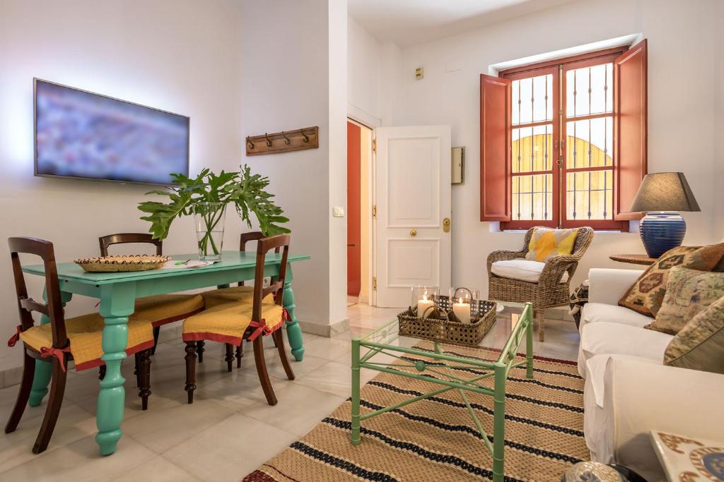 In the Old town district of Seville, close to Plaza de Armas, Álvarez Quintero Suite Apartment features free WiFi and a washing machine. It is set less than 1 km from Alcazar Palace and offers a lift. The property is 400 metres from the city centre and 1.1 km from Triana Bridge - Isabel II Bridge. The air-conditioned apartment consists of 1 bedroom, 2 living rooms, a fully equipped kitchen with a dishwasher and a coffee machine, and 1 bathroom with an a bath or shower and a hair dryer. Towels and bed linen are featured in the apartment. The accommodation is non-smoking. Popular points of interest near the apartment include Plaza de España, La Giralda and Sevilla Cathedral and Santa María La Blanca Church. The nearest airport is Seville Airport, 12 km from Álvarez Quintero Suite Apartment.