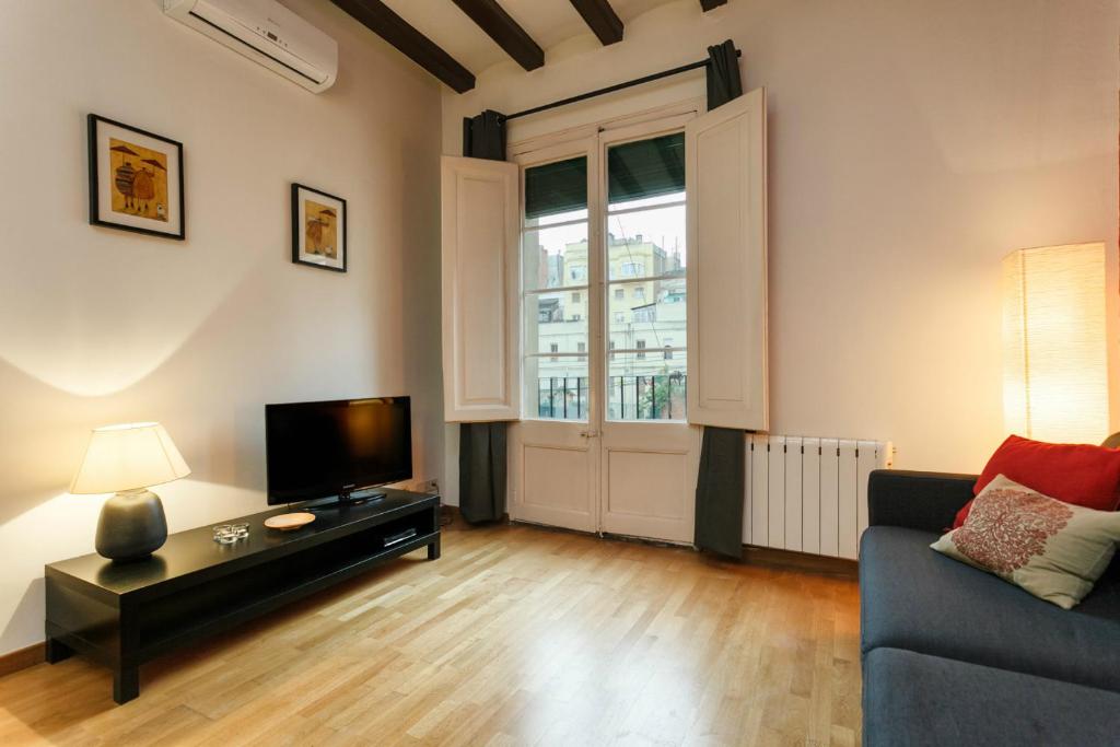 Located 50 metres from Las Ramblas and opposite Gaudí’s Palau Güell, Happy Apartments offers free Wi-Fi. Set in Barcelona’s Raval District, it features well-equipped apartments with stylish décor. Each air-conditioned apartment at Happy Apartments has a spacious living room with a sofa, TV and DVD player. Kitchenettes come with an electric hob, fridge and kettle. Luggage storage is available free of charge, and towels and bed linen are included. There is a selection of shops in the streets surrounding the apartments. You can find a range of bars, cafés and restaurants on Las Ramblas and the nearby Gothic quarter. Liceu Metro Station is 400 metres from the property, and La Boquería Market is a 5-minute walk away. Buses to the airport depart from Plaza Cataluña Square, a 10-minute walk from the apartments. Paseo de Gracia Street, known for its exclusive boutiques and Gaudi's buildings, can be reached in around 20 minutes on foot.