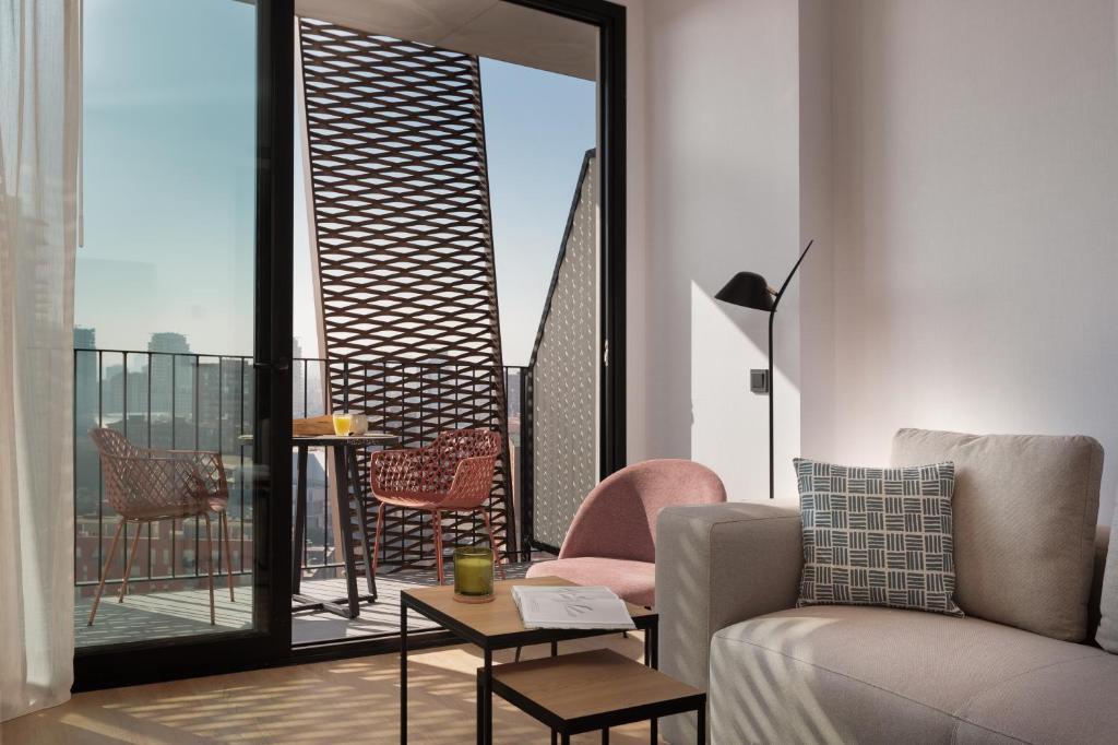 Offering a rooftop pool with a large sun terrace, TWO Hotel Barcelona by Axel is located in the heart of the gay district of Barcelona, 2 km from Barceloneta Beach. The hetero-friendly hotel offers on-site private parking. There is also a 24-hour reception and guests can get information on the gay scene and the city at the on-site tour desk. On the rooftop guests will also find the Sky bar, gym, steam bath and a masغير مجاز مي باشدe room. Each room here will provide you with air conditioning and a minibar. Featuring a shower, private bathroom also comes with a hairdryer. A safety deposit box and a universal phone charger are also provided. Guests can sample a drink at the rooftop bar, whilst taking in stunning city views or enjoy the delicious cocktails served in the Lounge Bar. A buffet breakfast is available and free high-speed WiFi access is provided throughout. Staff can give information about the surrounding area, which is known as "Gayxample" because of its lively gay nightlife. The hotel is 2 minutes' walk from Rocafort Metro Station and Plaça d'Espanya, with direct buses to Barcelona Airport, is a 10-minute walk away. Paral·lel, with bars, restaurants, clubs and theatres is 1.3 km from TWO Hotel Barcelona by Axel.