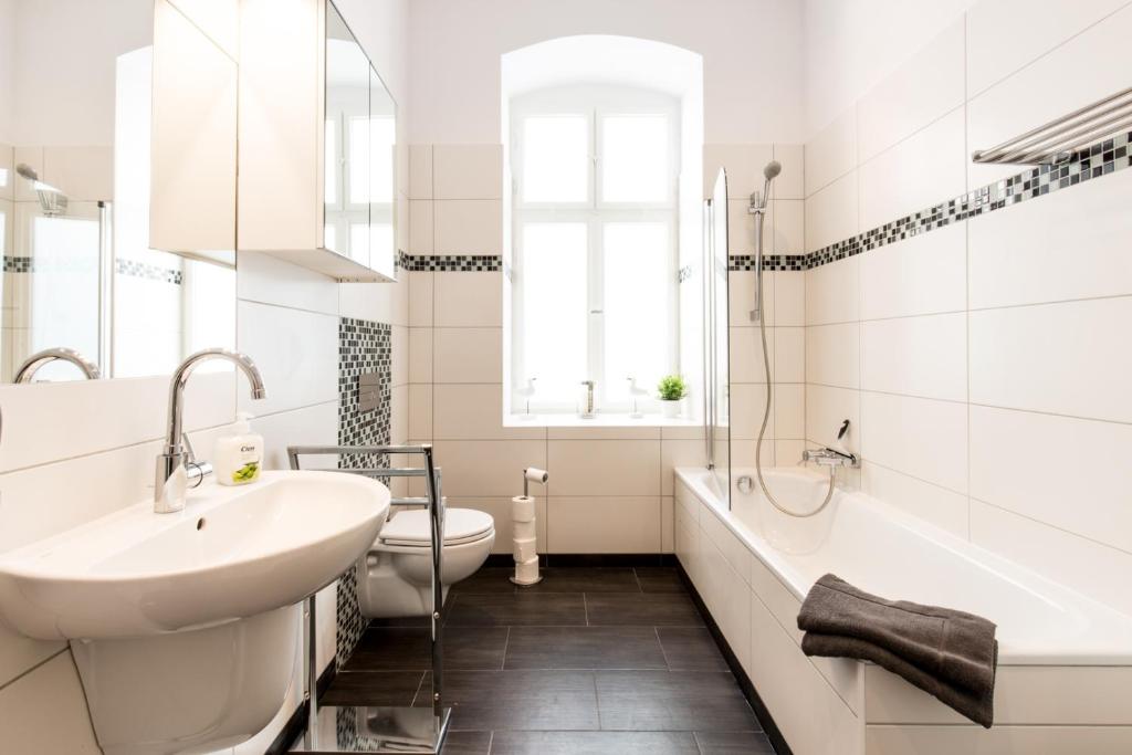 Offering city views, Apartment Fritz is an accommodation located in Berlin, 4.2 km from Zoologischer Garten underground station and 4.5 km from Kurfürstendamm. Among the facilities at this property are a 24-hour front desk and a lift, along with free WiFi throughout the property. Berliner Philharmonie is 5.4 km away and Holocaust Memorial is 5.8 km from the apartment. The spacious apartment features 3 bedrooms, a flat-screen TV with satellite channels, a fully equipped kitchen with a dishwasher and an oven, a washing machine, and 2 bathrooms with a bath. Towels and bed linen are provided in the apartment. This apartment is allergy-free and non-smoking. Topography of Terror is 5.8 km from the apartment, while Potsdamer Platz is 5.9 km away. The nearest airport is Berlin Brandenburg Willy Brandt Airport, 20 km from Apartment Fritz.