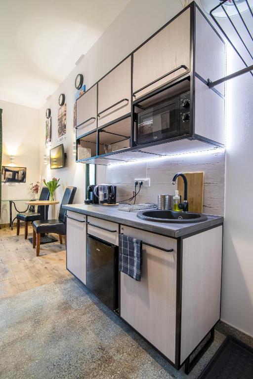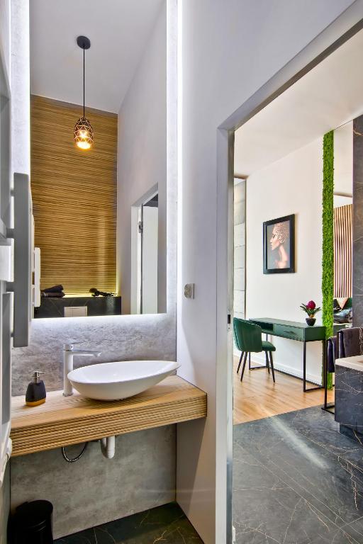 Situated in the centre of Kraków, Apartament czarny z jacuzzi features accommodation with free WiFi in a historic building. This recently renovated apartment is located less than 1 km from St. Mary's Basilica and a 11-minute walk from Lost Souls Alley. The apartment features a hot tub and luggage storage space. The apartment has 1 bedroom, a flat-screen TV with streaming services, a fully equipped kitchenette with a microwave and a toaster, and 1 bathroom with a hot tub. Towels and bed linen are available in the apartment. This apartment is allergy-free and non-smoking. Popular points of interest near the apartment include St. Florian's Gate, Wawel Royal Castle and Krakow Central Railway Station. The nearest airport is John Paul II International Kraków–Balice Airport, 17 km from Apartament czarny z jacuzzi.
