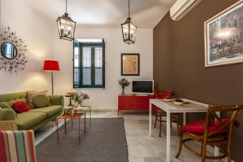 Set in the heart of Seville, 3.1 km from Triana Bridge - Isabel II Bridge and 3 km from Alcazar Palace, Bright Apartment at Santa Cruz 6 pax, Parking Optional offers air-conditioned accommodation with a balcony and free WiFi. The property has city views and is 1.3 km from Plaza de España and less than 1 km from Casa de Pilatos. The apartment features 2 bedrooms, a flat-screen TV, an equipped kitchen with a microwave and a fridge, a washing machine, and 1 bathroom with a shower. Barrio Santa Cruz is 400 metres from the apartment, while Santa María La Blanca Church is 20 metres away. The nearest airport is Seville Airport, 9 km from Bright Apartment at Santa Cruz 6 pax, Parking Optional.