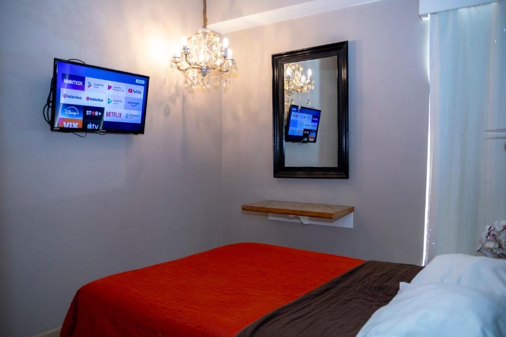 In the Guerrero district of Mexico City, close to Palacio de Correos, Se renta por día departamento en el Centro has a garden and a washing machine. This property is set a short distance from attractions such as Museo de Memoria y Tolerancia, Museo de Arte Popular, and Zocalo Square. There is a sun terrace and guests can make use of free WiFi and free private parking. The spacious apartment with a balcony and city views features 2 bedrooms, a living room, a flat-screen TV, an equipped kitchen with an oven and a microwave, and 2 bathrooms with a shower. Towels and bed linen are featured in the apartment. The accommodation offers a fireplace. Popular points of interest near the apartment include Metropolitan Cathedral of Mexico City, Tenochtitlan Ceremonial Center and The Museum of Fine Arts. The nearest airport is Benito Juarez International Airport, 9 km from Se renta por día departamento en el Centro.