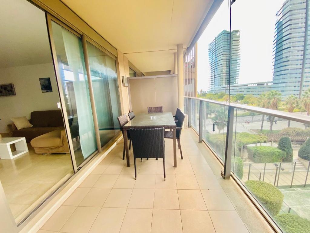 The A******a Flats Diagonal Mar Apartments are two different apartments, located in the same residential building. Both apartments have four bedrooms and 2 bathrooms. One of them, "Four-Bedroom Apartment with Sea View - 10th Floor" located in a tenth floor, offers impressive views of the Mediterranean sea and Barcelona. The other one, "Four-Bedroom Apartment with Terrace - 4th Floor" is located and a fourth floor and has a beautiful terrace, with pleasant views to the community garden and partial side view of the sea. The two stylish air-conditioned apartments have a private furnished terrace and free WiFi. There are 4 double bedrooms and 2 bathrooms.The large living rooms have a 60" smart TV. A dishwasher, washing/drying machine and oven can be found in the well-equipped kitchen. Please, make sure which of the two apartments you select. See descriptions and pictures of each one. As the apartments are located in a residential building, we warn that the apartments are not suitable for groups of young people who want to party or noisy groups. Especially at night you must respect the rest of the neighbors. A******a Flats Diagonal Mar Apartments are located 300 metres from the beach. This modern apartments are set in a complex with a swimming pool and paddle-tennis courts. Also, Diagonal Mar Shopping Centre is opposite the property. El Maresme I Forum Metro Station is 500 metres from the property and the fashionable Born district is 7 stops away on the metro. La Rambla and غیر مجاز می باشدrada Familia are 5 km from A******a Flats Diagonal Mar. Taxi and bus stops are also next to the apartments.